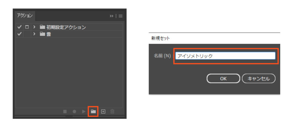 アクションパネル下部のアイコンをクリックし、新規セットを作成します。