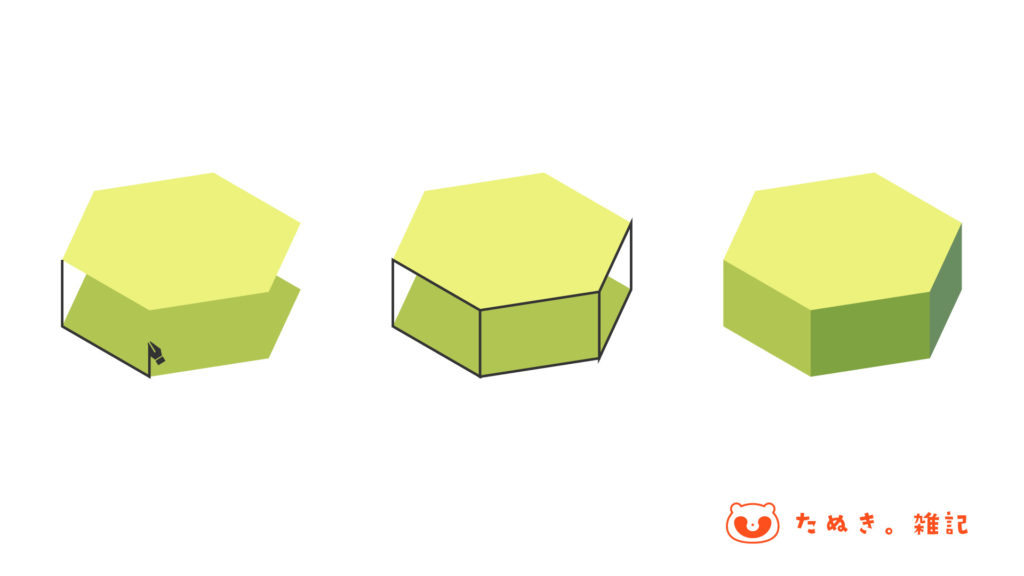 でも大丈夫、わざわざ全ての面の図形を用意しなくても、アイソメトリックイラストは描くことができます。