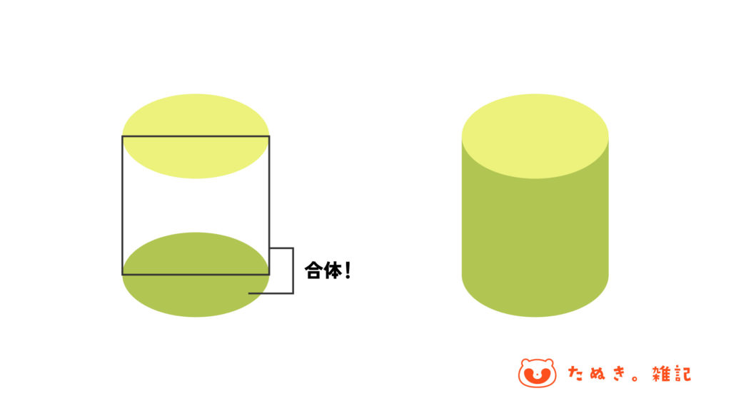 円のような曲線がある場合は長方形で側面を描き、パスファインダーで奥側の面と合体すると簡単です。