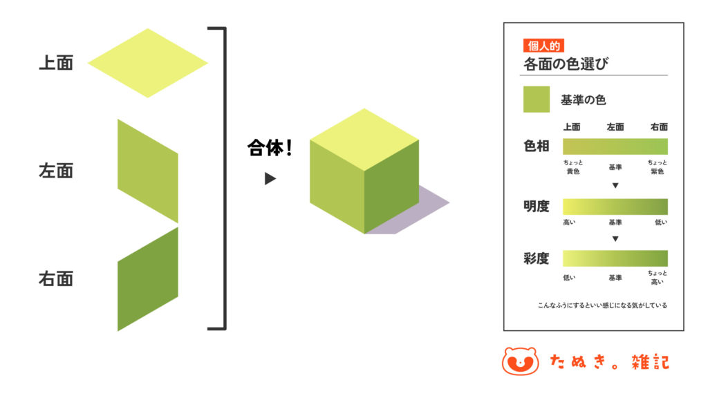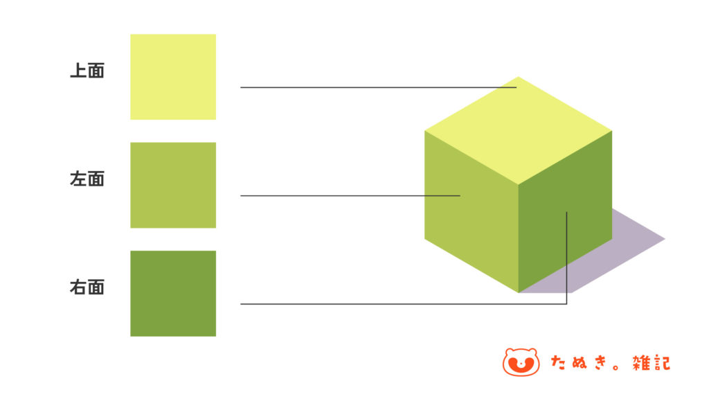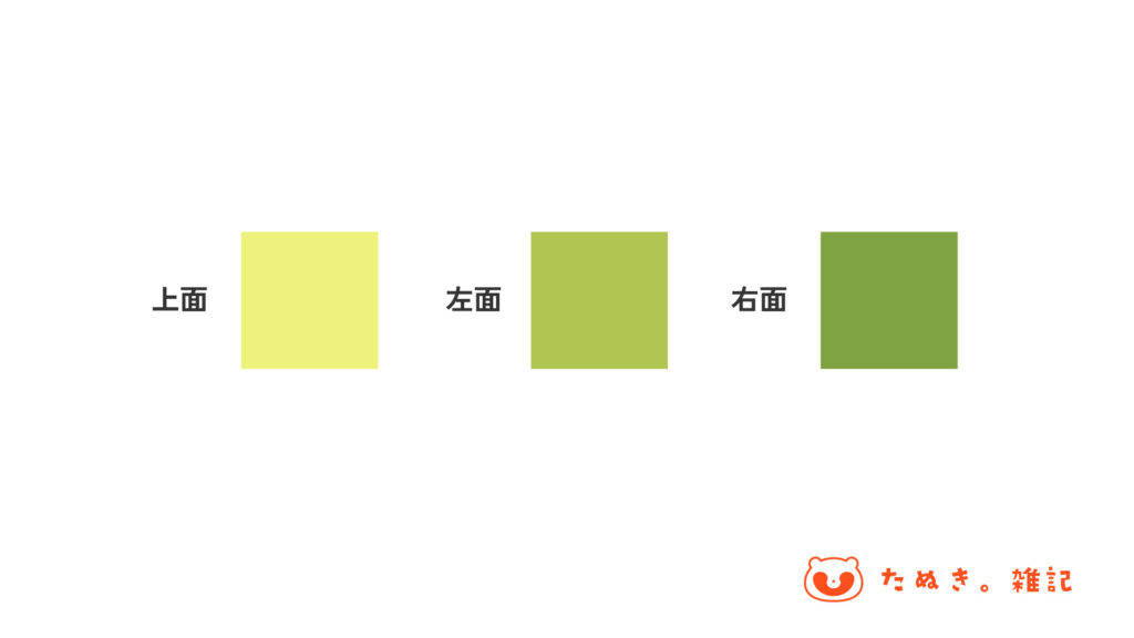 紹介した手順では、はじめに上面、右面、左面の3つ図形を用意しました。